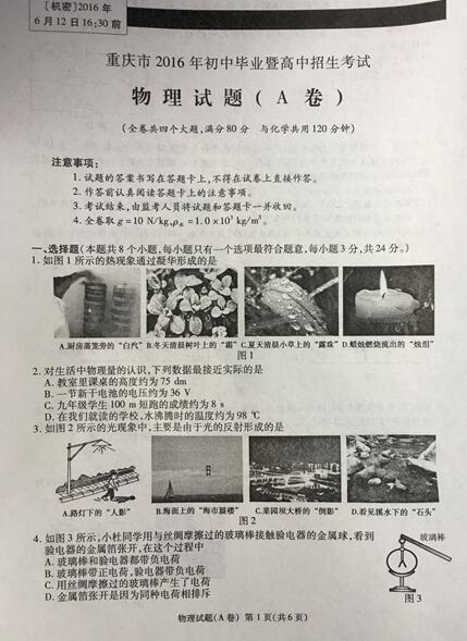 来源 : 网络 06月17日 17:06 关键字 : 重庆中考物理试题及答案 2016中考