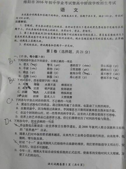 来源 : 网络 06月15日 15:53 关键字 : 四川绵阳中考语文试题及答案 2016中考