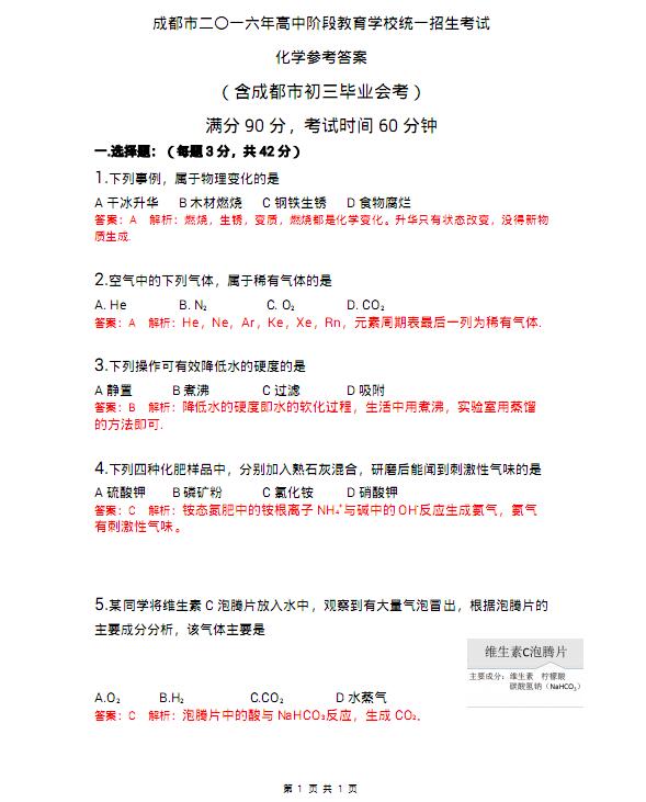 来源 : 网络 06月15日 16:49 关键字 : 四川达州中考化学试题及答案 2016中考