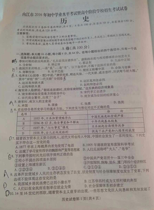来源 : 网络 06月14日 18:13 关键字 : 内江中考历史试题及答案 2016中考