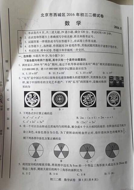 来源 : 网络 05月30日 14:16 关键字 : 2016辽宁中考试题 2016辽宁中考答案