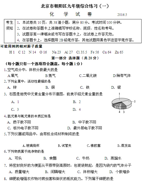 2016北京朝阳区中考一模化学考试已经结束,新东方在线中考网整理了《2016北京朝阳区中考一模化学试题及答案》,供家长和中考生们参考。 点击下载:2016北京中考一模试题及答案[page]...