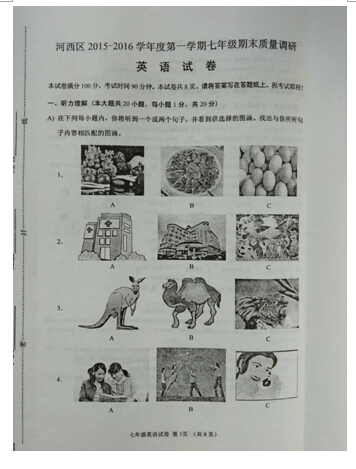 2016期末考试已经陆续结束,新东方在线中考网整理了《2016天津河西区初一上学期英语期末试题及答案》,供同学们参考。2016天津河西区初一上学期英语期末试题及答案 更多2016中考资料...