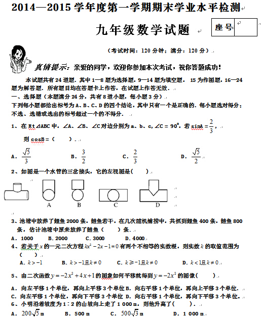 来源 : 网络 01月13日 14:32 关键字 : 初三数学试卷 数学期末试卷 数学期末答案