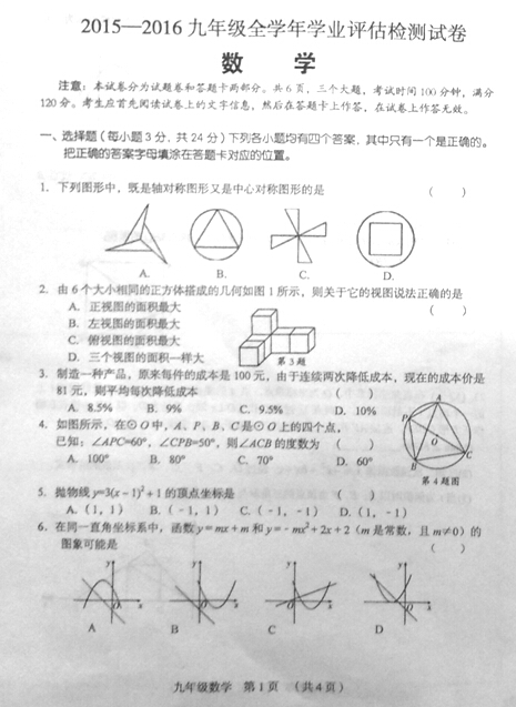 来源 : 网络 01月13日 15:27 关键字 : 初三数学试卷 数学期末试卷 数学期末答案