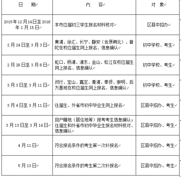 来源 : 上海市教育考试院 12月23日 18:40 关键字 : 上海中考报名时间安排