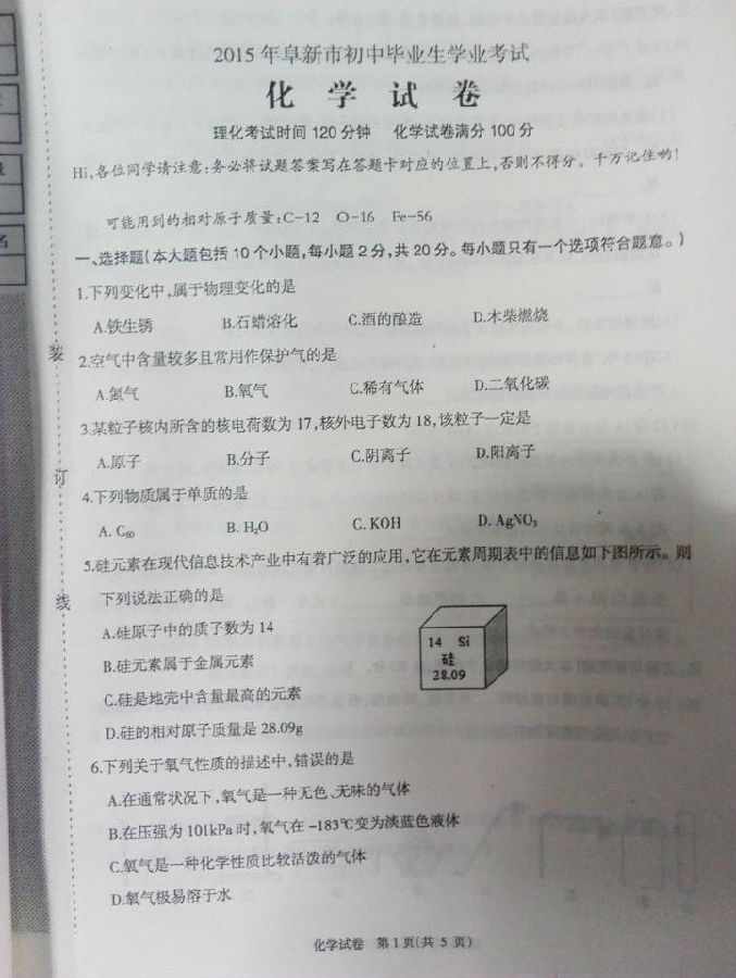 来源 : 网络 07月30日 17:20 关键字 : 辽宁阜新中考化学试卷中考化学