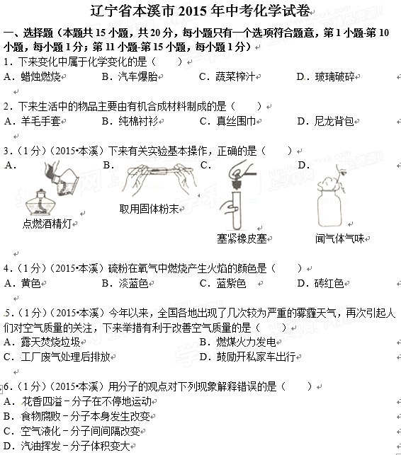 来源 : 网络 07月30日 17:22 关键字 : 辽宁本溪中考化学试卷中考化学