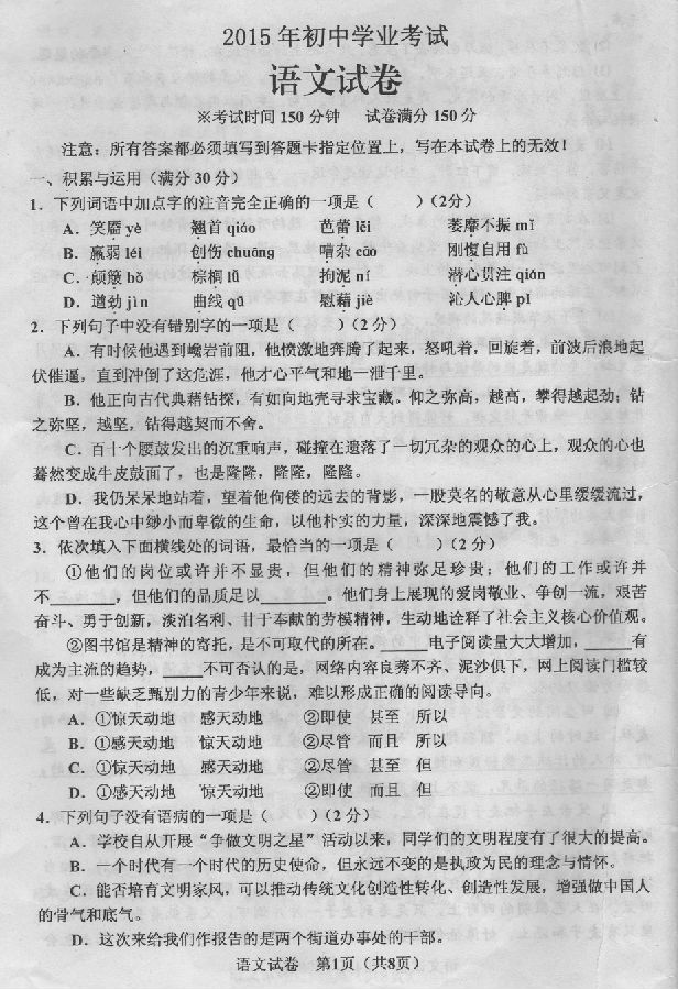 来源 : 网络 07月30日 15:52 关键字 : 辽宁鞍山中考语文试卷中考语文