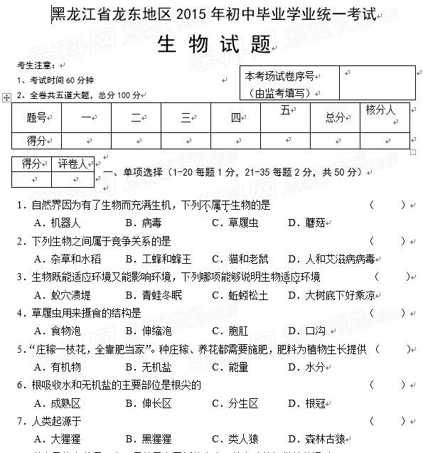 来源 : 网络 07月29日 18:40 关键字 : 黑龙江龙东中考生物试卷中考生物