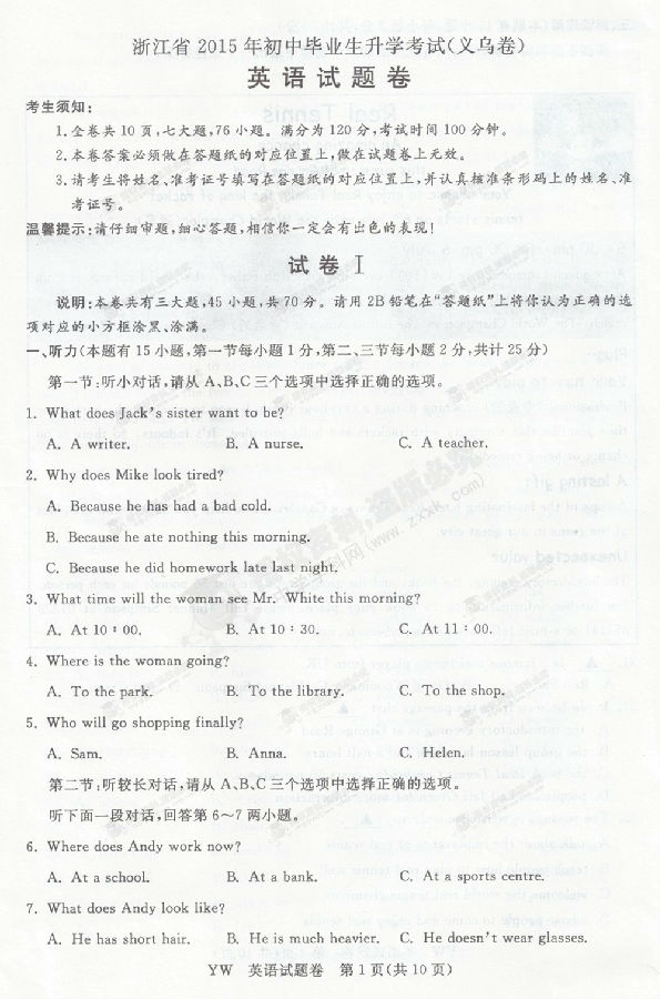 来源 : 网络 07月23日 11:00 关键字 : 浙江义乌中考英语试卷中考英语