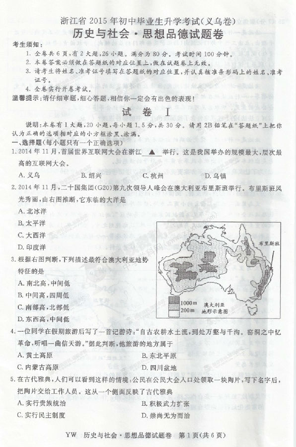来源 : 网络 07月23日 11:10 关键字 : 浙江义乌中考政治试卷中考政治