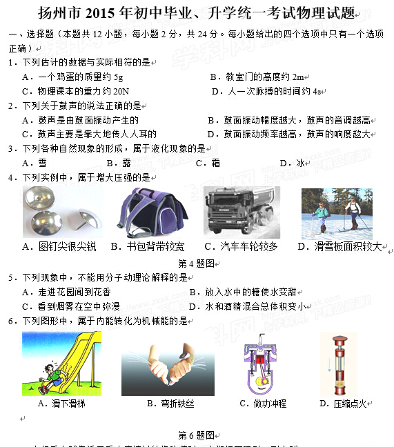 来源 : 网络 07月17日 14:16 关键字 : 江苏扬州中考物理试卷中考物理