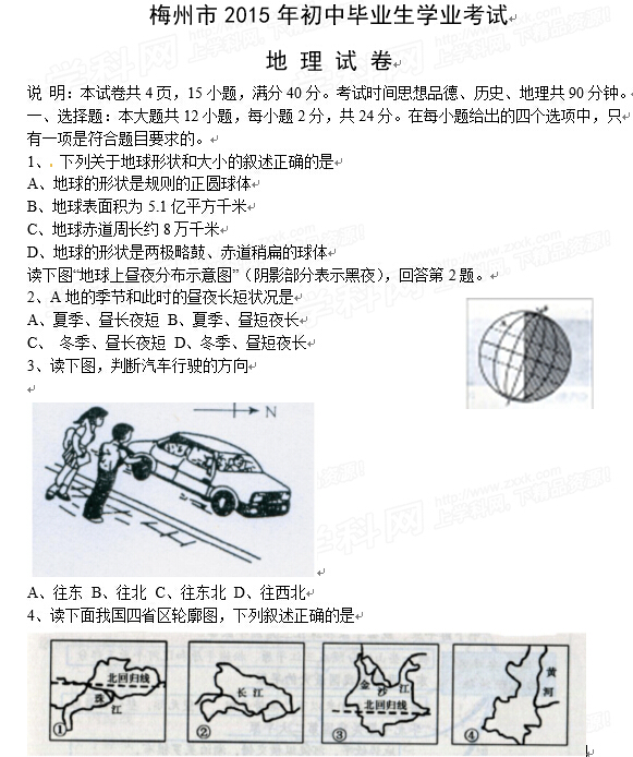 来源 : 网络 07月16日 11:41 关键字 : 广东梅州中考地理试卷中考地理