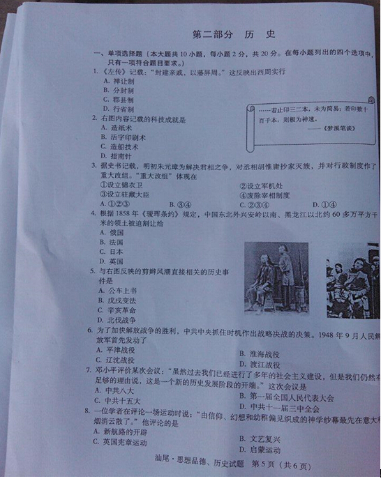 来源 : 网络 07月15日 14:44 关键字 : 广东汕尾中考历史试卷中考历史