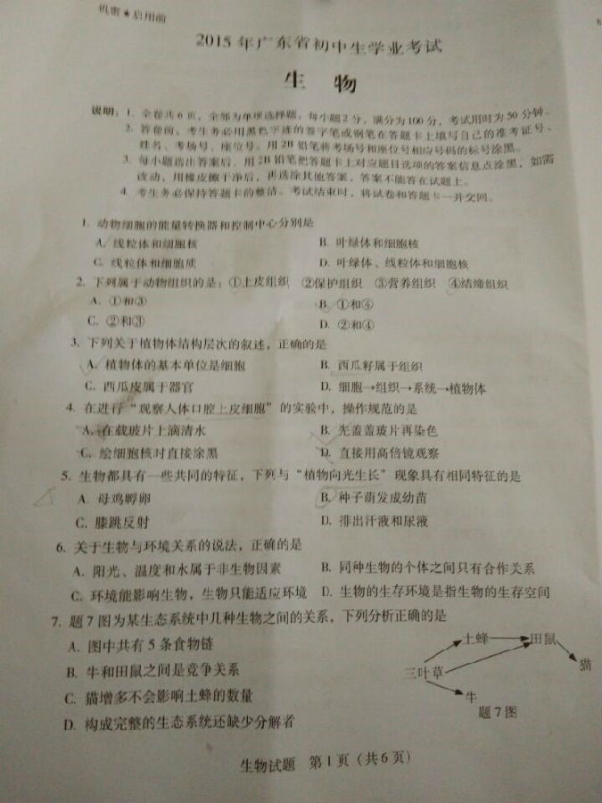 来源 : 网络 07月15日 12:11 关键字 : 广东省中考生物试卷中考生物
