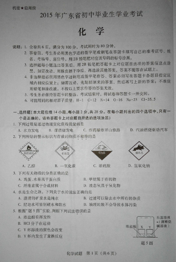 来源 : 网络 07月15日 12:16 关键字 : 广东省中考化学试卷中考化学