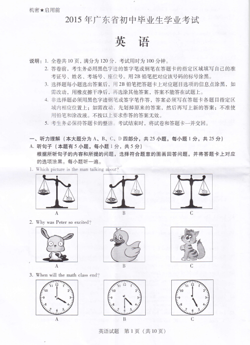 来源 : 网络 07月15日 12:25 关键字 : 广东省中考英语试卷中考英语