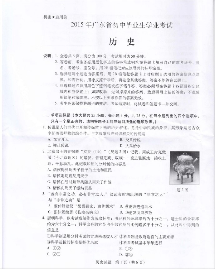 来源 : 网络 07月15日 14:13 关键字 : 广东省中考历史试卷中考历史