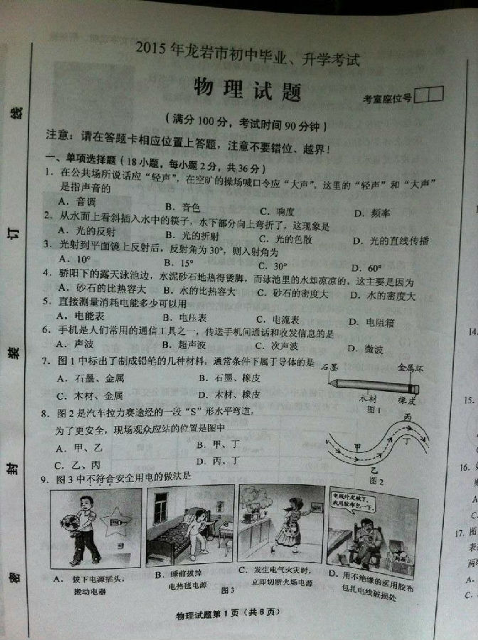 来源 : 网络 07月14日 11:26 关键字 : 福建龙岩中考物理试卷中考物理