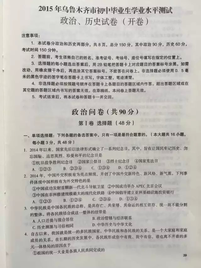 来源 : 网络 07月09日 11:03 关键字 : 新疆乌鲁木齐中考政治试卷及答案 中考政治