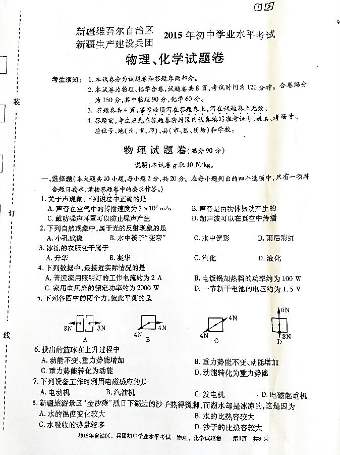 来源 : 网络 07月09日 11:24 关键字 : 新疆中考物理试卷及答案 中考物理