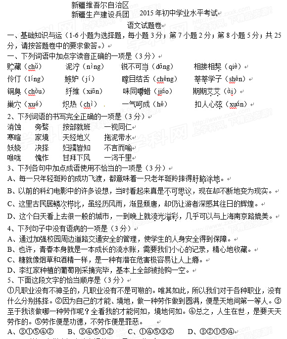 来源 : 网络 07月09日 11:33 关键字 : 新疆中考语文试卷及答案 中考语文