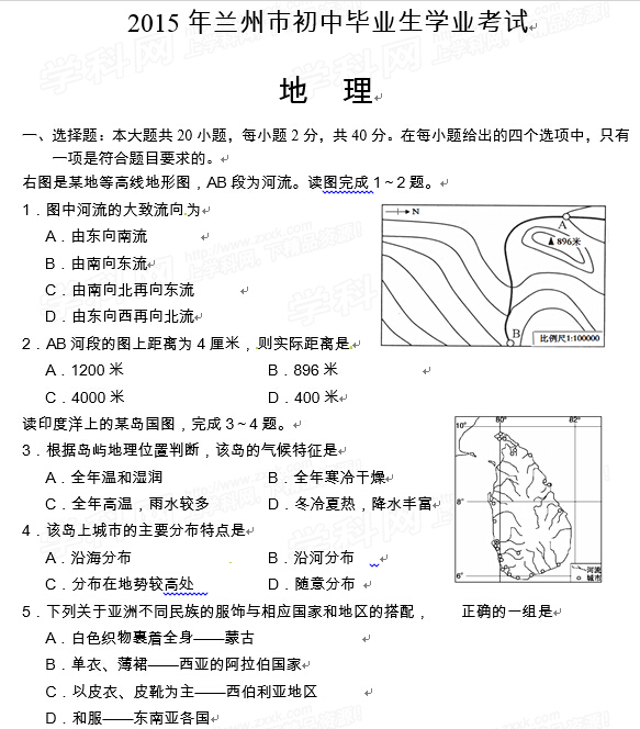 来源 : 网络 07月08日 14:58 关键字 : 甘肃兰州中考地理试卷及答案 中考地理