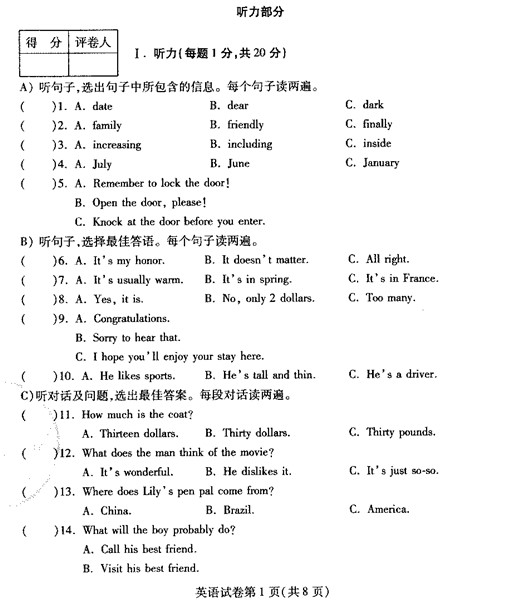 来源 : 网络 07月08日 11:53 关键字 : 甘肃酒泉中考英语试卷及答案 中考英语