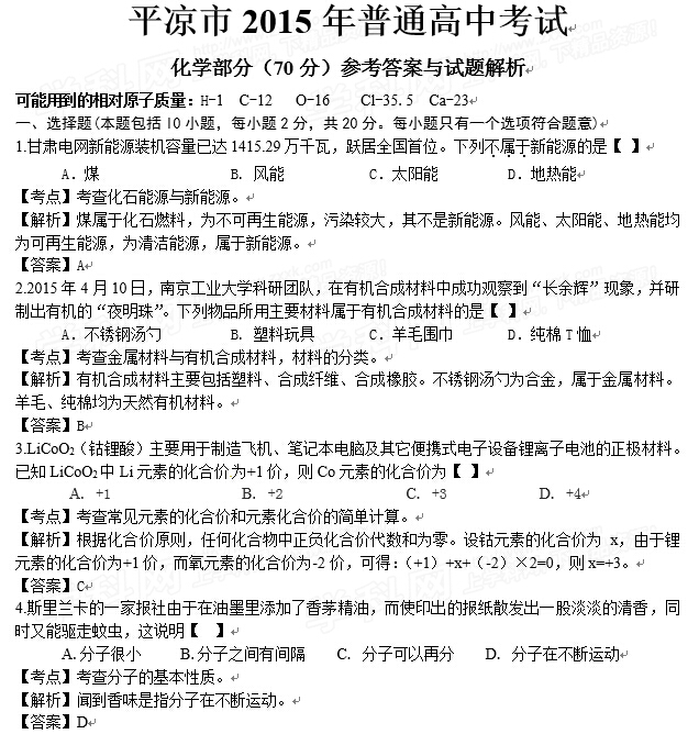 来源 : 网络 07月07日 10:57 关键字 : 甘肃临夏州中考化学试卷及答案 中考化学