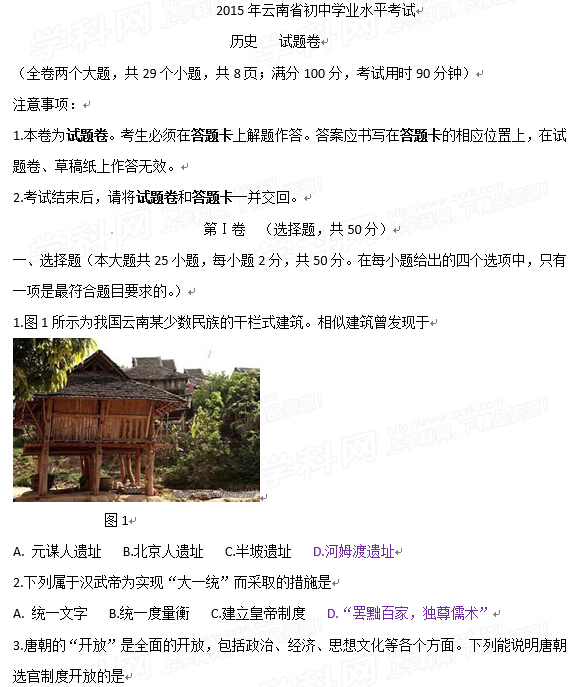 来源 : 网络 07月06日 12:22 关键字 : 云南昆明中考历史试卷及答案 中考历史