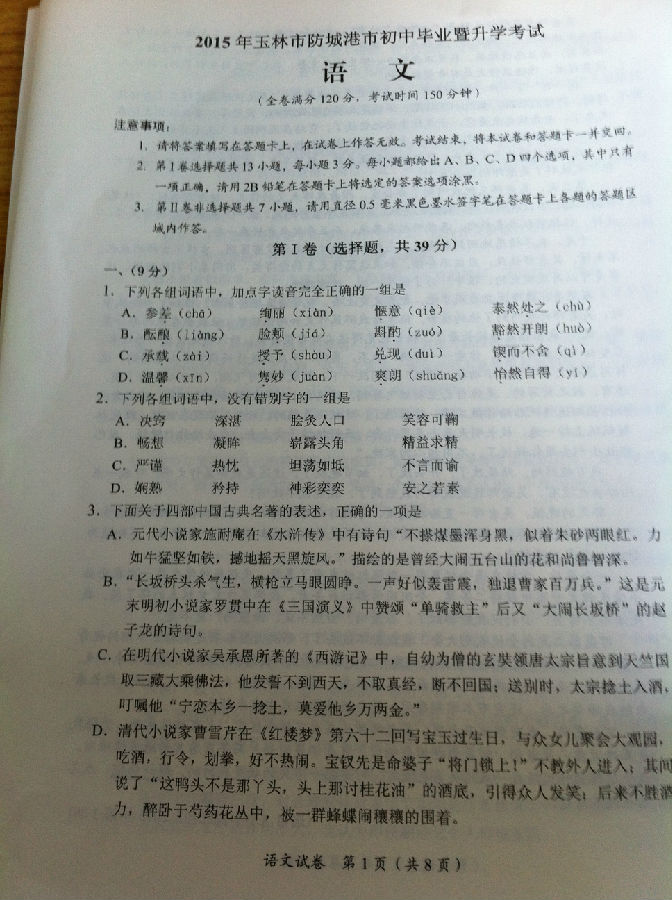 来源 : 网络 07月03日 10:45 关键字 : 广西贵港中考语文试卷及答案 中考语文