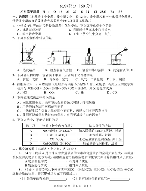 来源 : 网络 07月02日 11:58 关键字 : 贵州安顺中考化学试卷及答案 中考化学