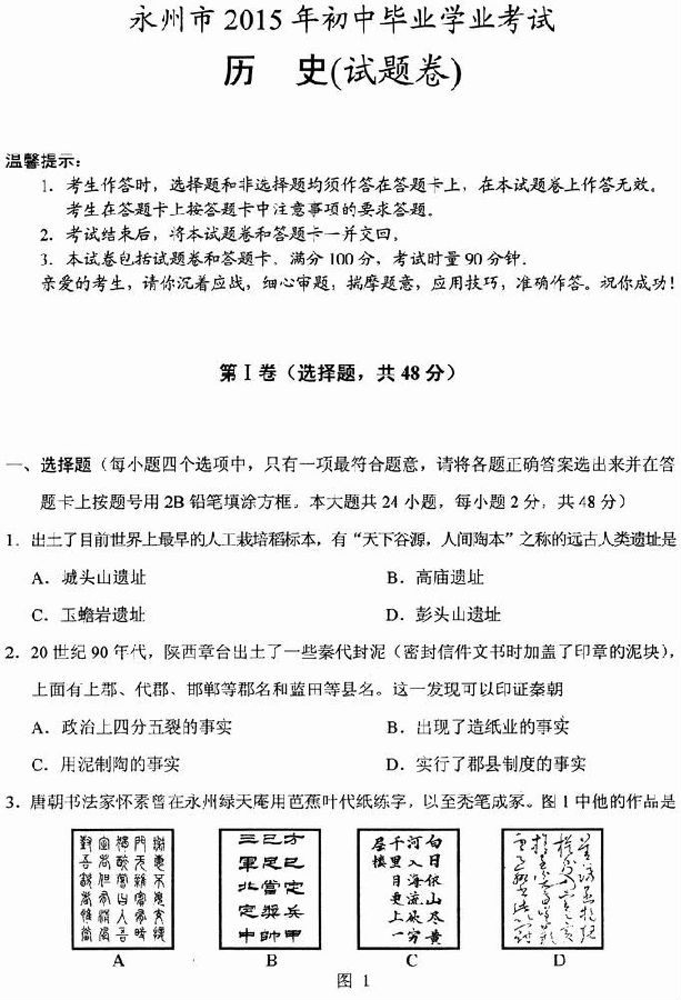 来源 : 网络 07月01日 12:25 关键字 : 湖南永州中考历史试卷及答案 中考历史