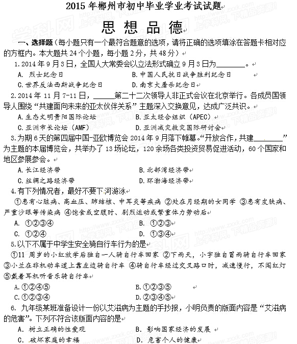 来源 : 网络 07月01日 14:45 关键字 : 湖南郴州中考政治试卷及答案 中考政治