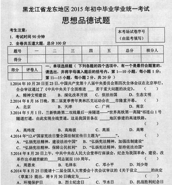 来源 : 网络 06月30日 15:38 关键字 : 黑龙江鸡西中考政治试卷及答案