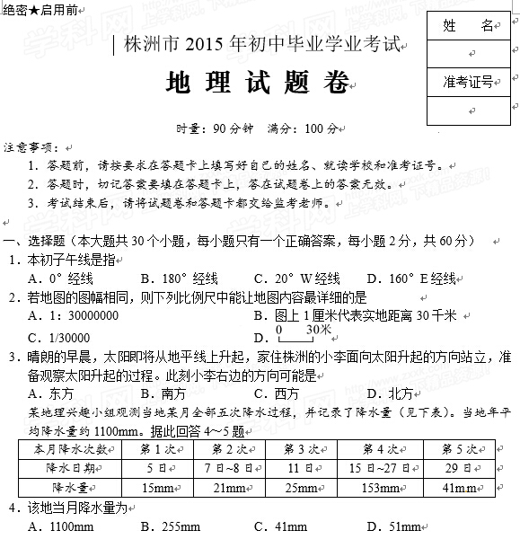 来源 : 网络 06月30日 15:54 关键字 : 湖南株洲中考地理试卷及答案 中考地理