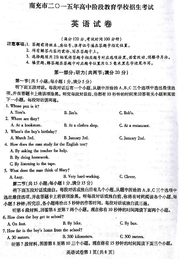 来源 : 网络 06月17日 15:20 关键字 : 四川南充中考英语试卷及答案 中考英语
