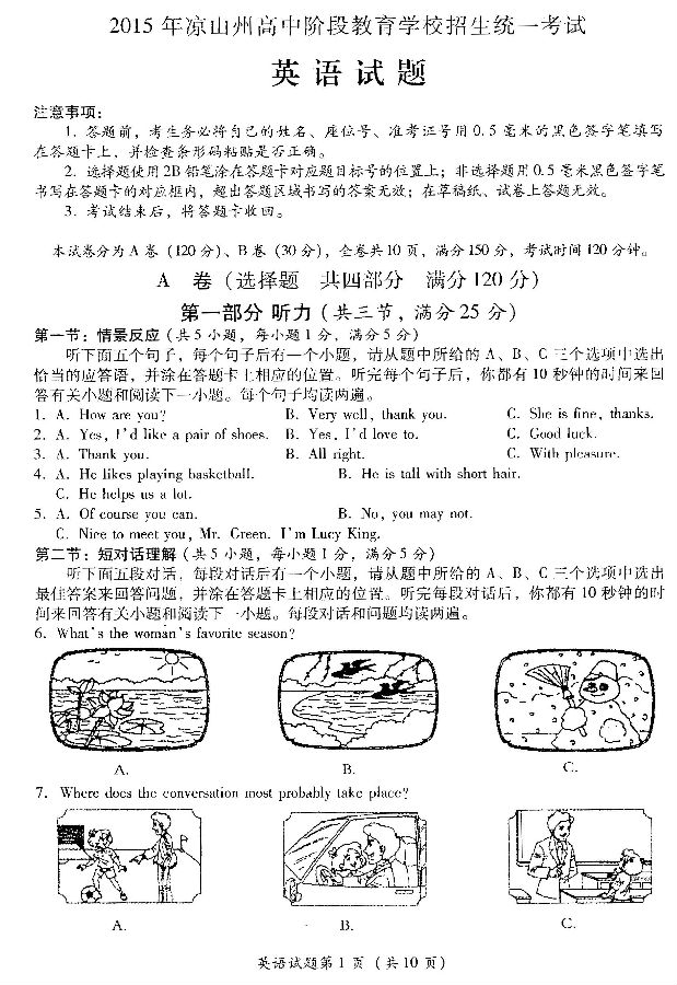 来源 : 网络 06月17日 15:40 关键字 : 四川凉山中考英语试卷及答案 中考英语