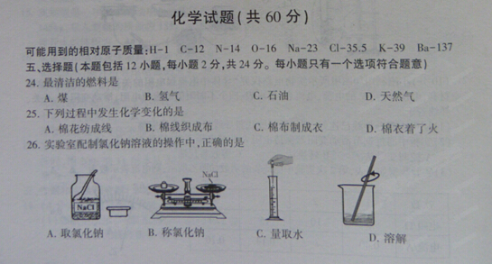 来源 : 网络 06月17日 16:35 关键字 : 江苏连云港中考化学试卷及答案 2015中考