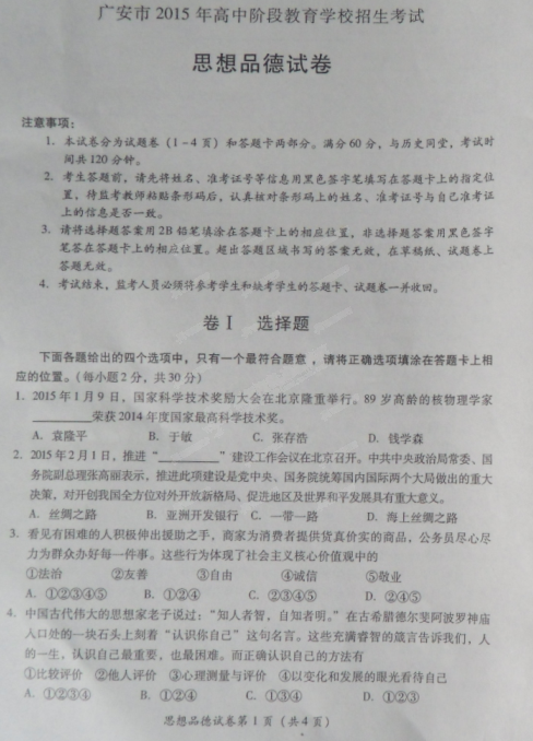 来源 : 网络 06月17日 14:24 关键字 : 四川广安中考政治试卷及答案 中考政治