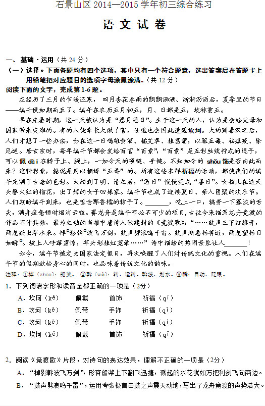 北京石景山区2015年中考语文二模考试已经结束,新东方在线中考网第一时间发布《北京石景山区2015中考语文二模试题及答案》,供中考考生参考。[page][page][page][page][page][page][page...