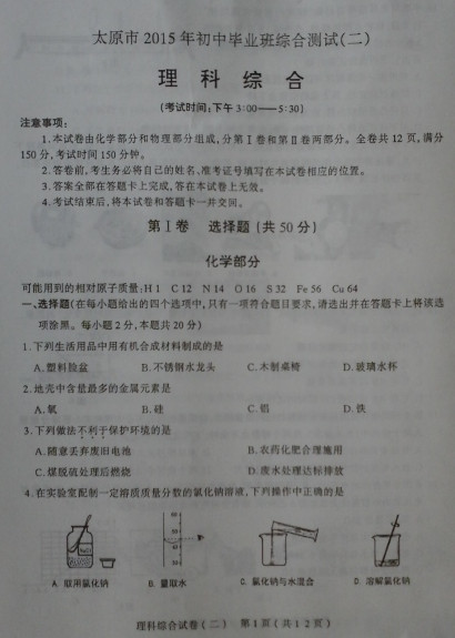 新东方在线中考网整理了《山西太原2015中考物理二模试题及答案》,供中考生们参考。更多关于2015中考真题、中考最新资讯、中考录取分数线等请关注新东方在线中考网。[page][page][page][...