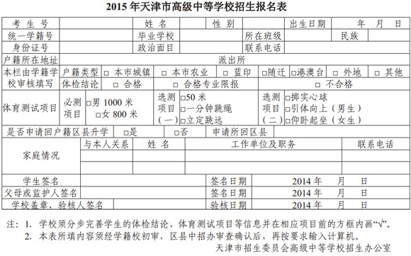 《2015年天津市高级中等学校招生报名工作规定》已出台,通知规定2015 年天津市中考报名时间为:2014 年12 月15 日至 20 日,逾期不再补报。户籍动迁学生进津手续原则上于 2014 ...
